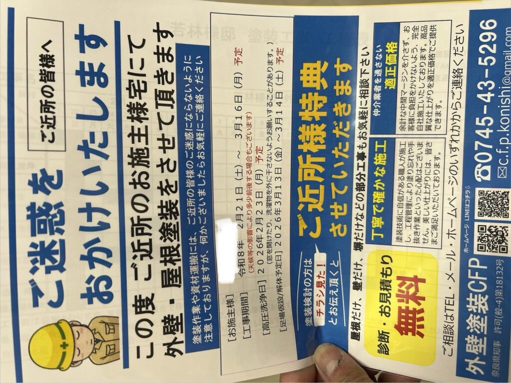 施工ブログ2026年2月23日【香芝市】外壁塗装