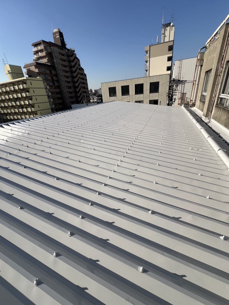 東大阪で折半屋根塗装が完成|午後は橿原市で足場着工