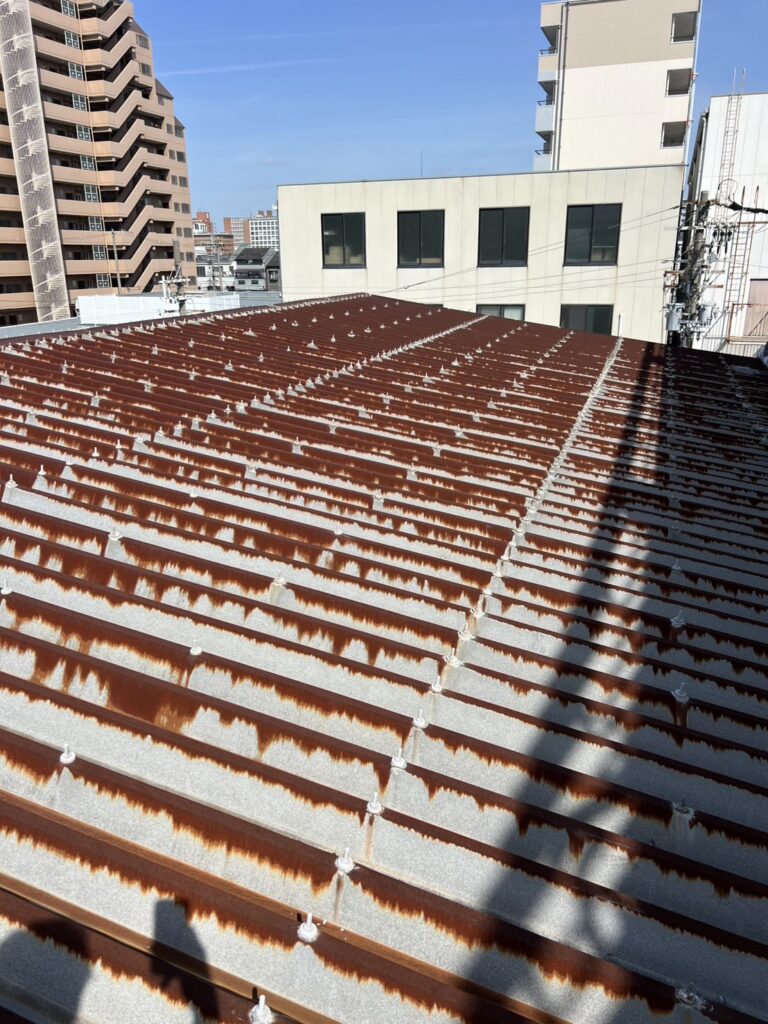 今回施工するのは、長年の劣化により錆が進行している折半屋根。