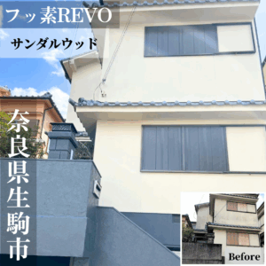 橿原市で屋根外壁塗装させていただきました。ありがとうございました。 【外壁】フッ素REVO色:コーヒーブラウン 【屋根】ハイルーフマイルドシリコン遮熱色:ブラック